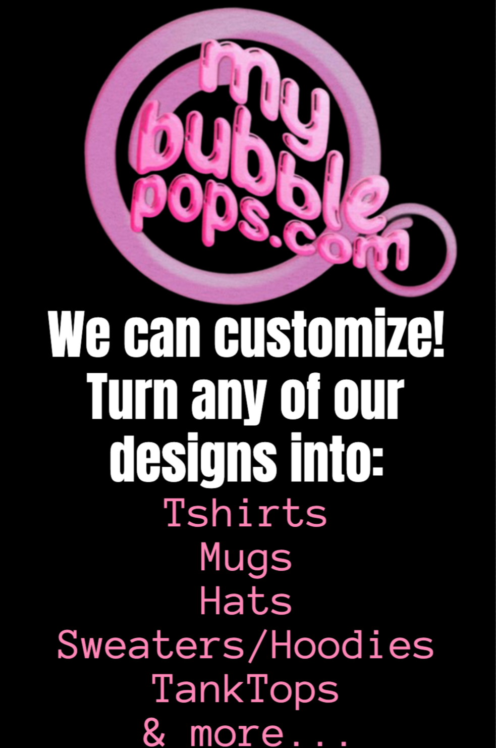 See a design but wish it was printed on something else? Or if you like the design on a Youth/Kids size? We can likely make it happen! Just let us know what you are looking for and we will give you some options.
