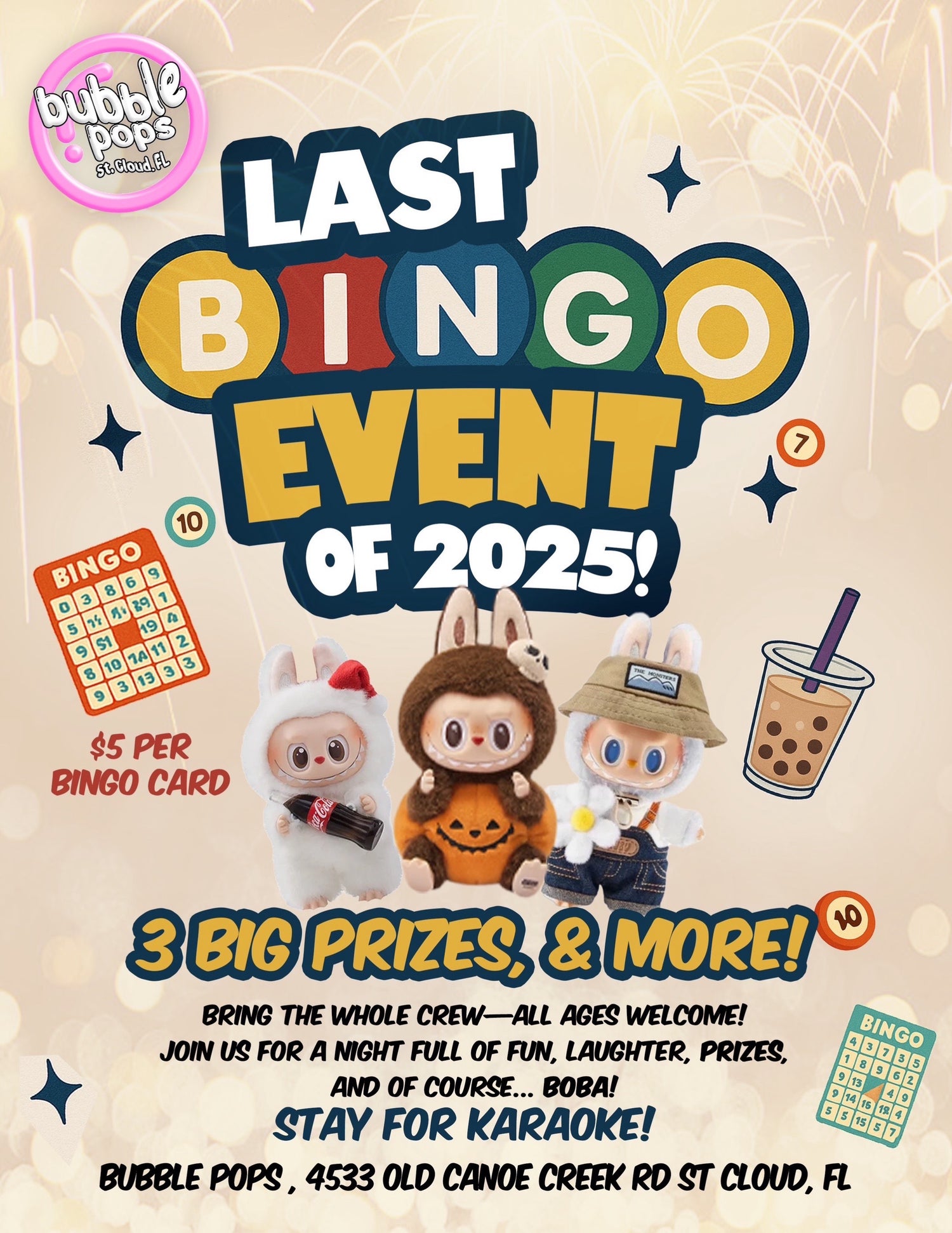 From now until January 11th, 2026. Bubble Pops will have a blind box pop up store at the NightGarden event. Location: Fairchild Tropic Botanical Garden. 10901 Old Cutler Rd. Miami, FL 33156. Open 5:30pm-9:30pm. See Event Info for operating dates.