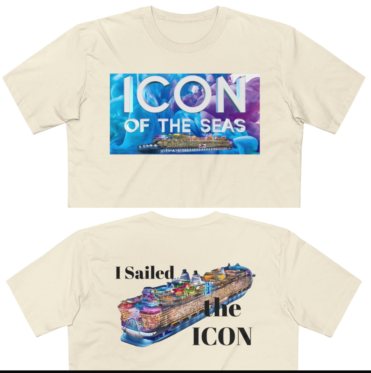 The largest cruiseship in the world debuts 2024. BubblePops has got that covered! "I Sailed the ICON" text on the back shirt. This comfy and casual t-shirt makes the ultimate go-to t-shirt. It comes in a regular fit with a fitted crew neck, it’s made of mid-weight 100% combed cotton. Built to last with a ribbed neckline, side seams, shoulder to shoulder tape, and double-needle hems. It is also preshrunk to minimize shrinkage.
