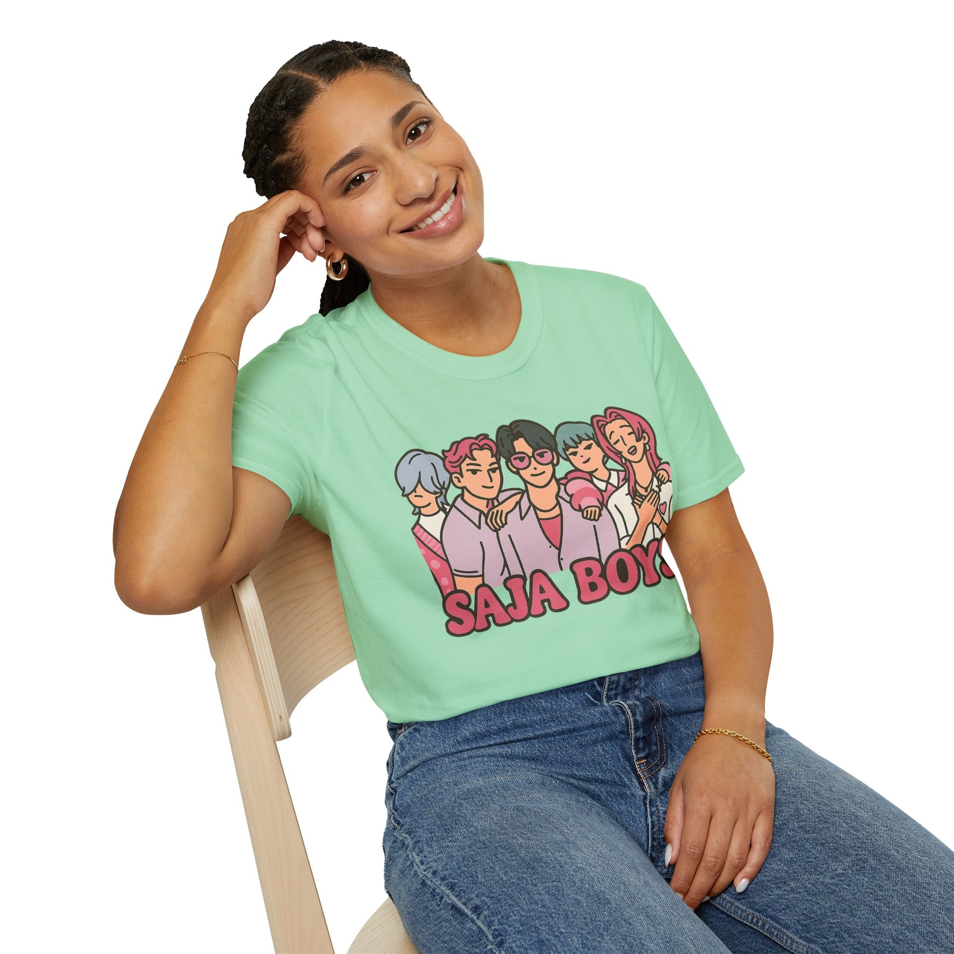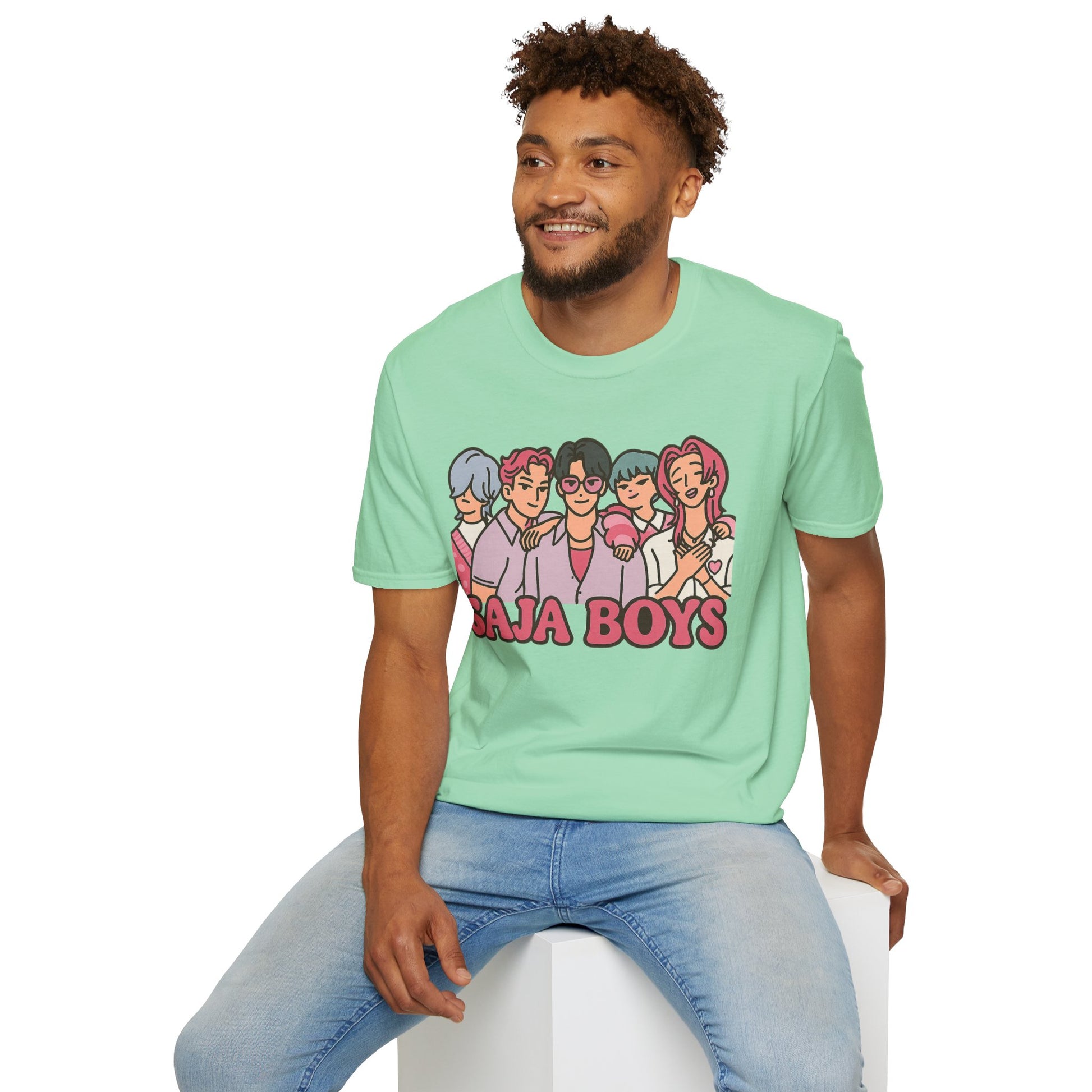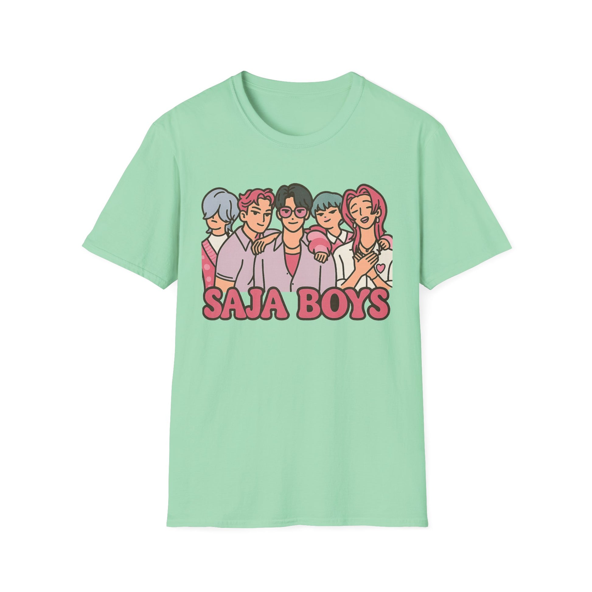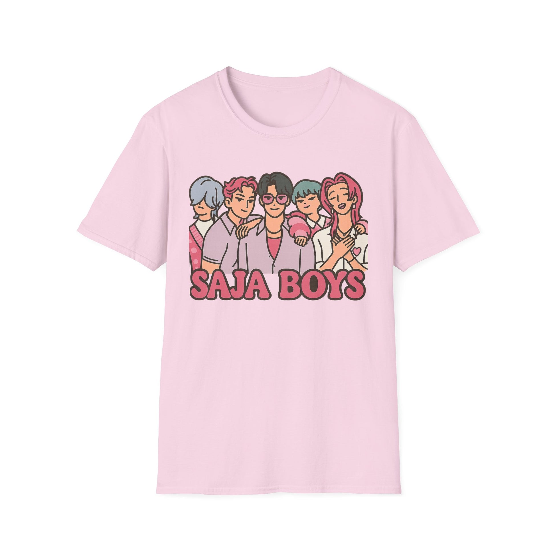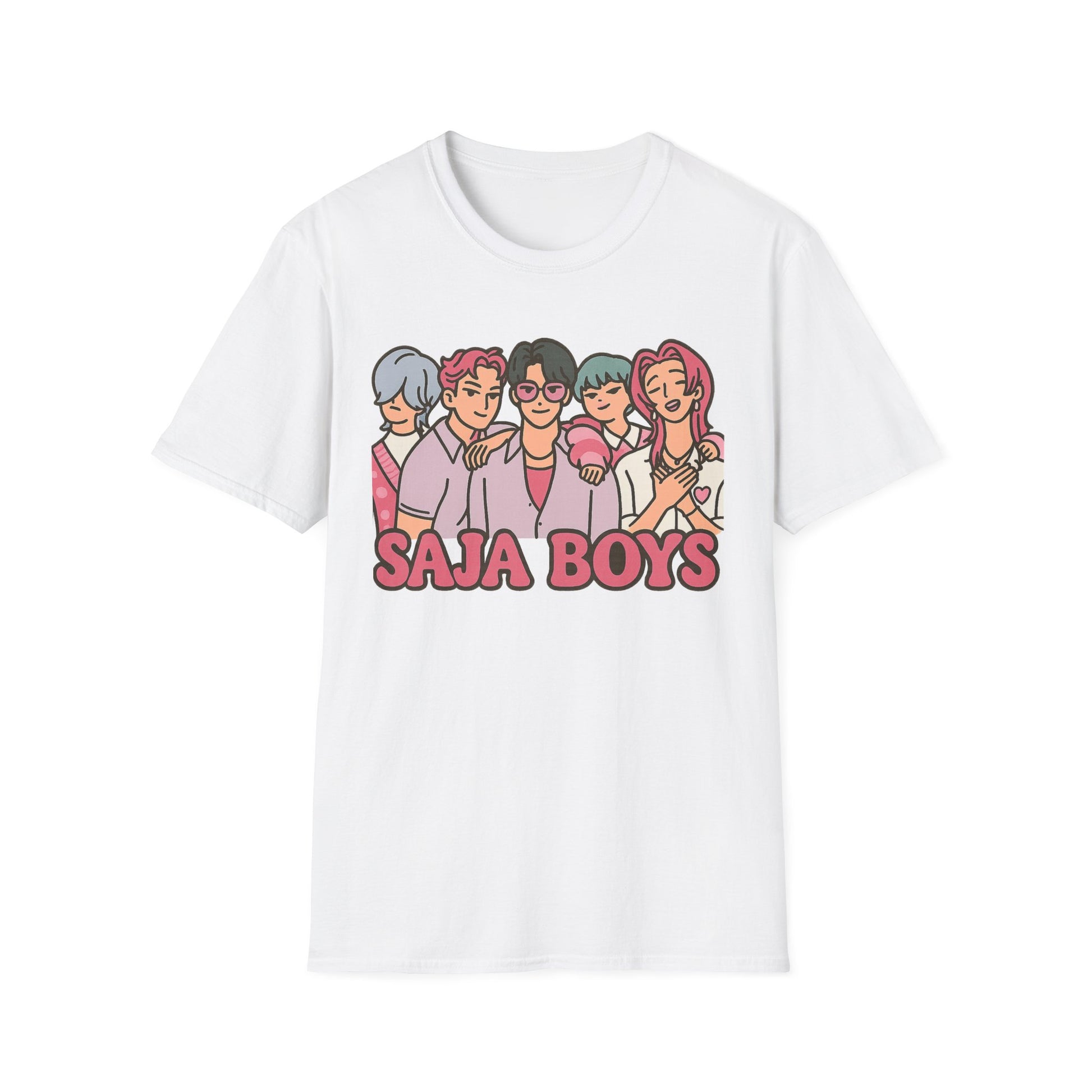 Unleash your inner idol with the SAJA BOYS (K-Pop Demon Hunters-Inspired) Adult Unisex Shirt — where fierce fashion meets supernatural swagger. Featuring our five iconic boys in bold pastel hues, this tee blends K-pop charm with heroic energy. Perfect for fans of music, magic, and everything K-Pop-powered.
